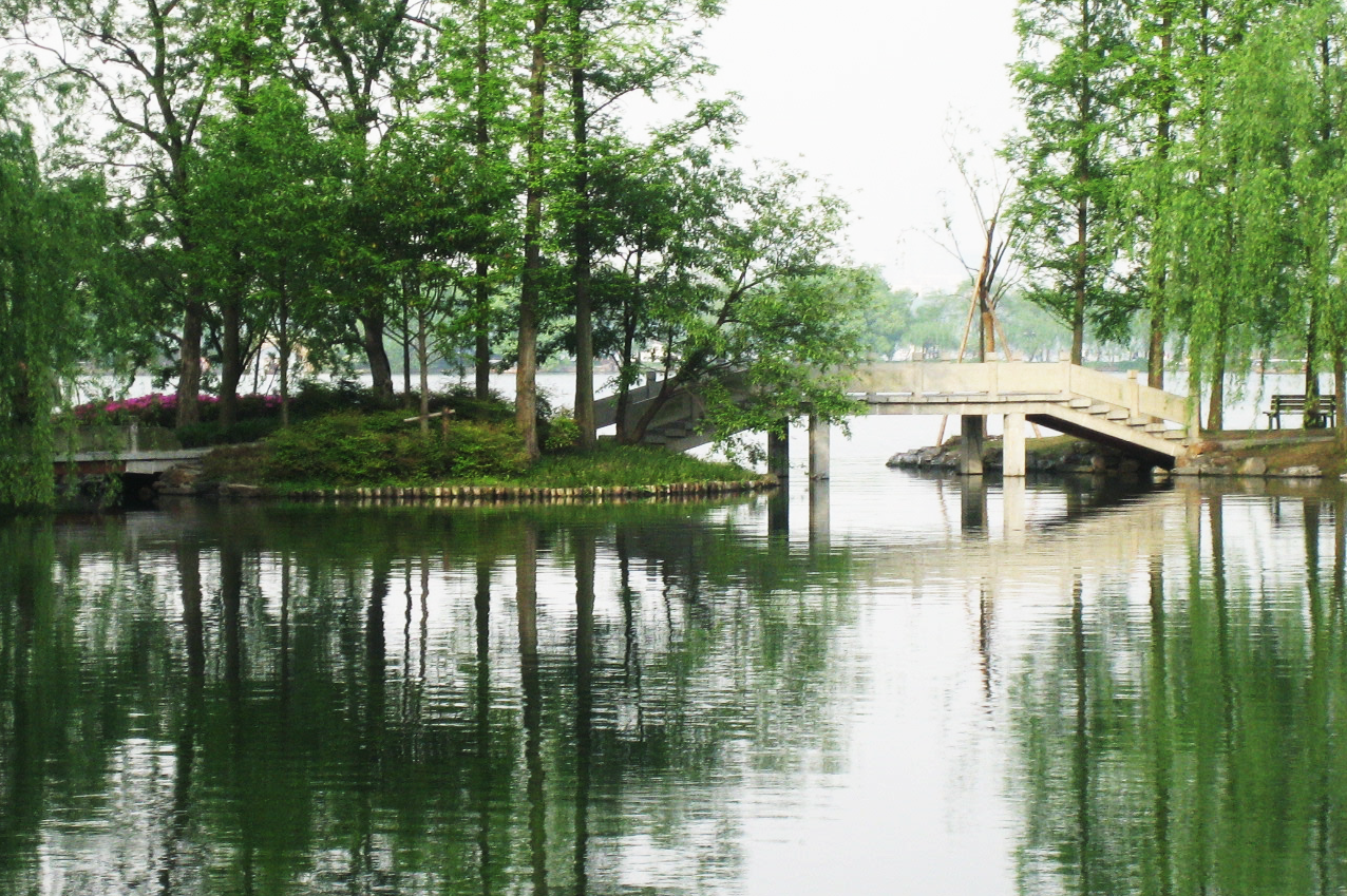 此外,苏轼还在长堤上设计了六座桥,分别名为映波、锁澜、望山、压堤、东浦和跨虹,同时在湖中种植芙蓉,在堤上种植杨柳,又建了九座凉亭,方便行人休憩。苏堤自北宋始建至今,一直保持了沿堤两侧相间种植桃树和垂柳的景观特色。每逢春季拂晓,堤上烟柳笼纱,波光树影,鸟鸣莺啼。后人为纪念苏轼,将此堤命名为“苏堤”。