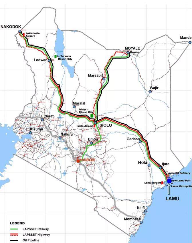 其他组成部分包括在拉穆(Lamu),伊西奥洛(Isiolo)和图尔卡纳湖(Lake Turkana)建设度假城市,光纤连接,在拉穆(Lamu)的炼油厂来处理通过管道向南输送的南苏丹石油。