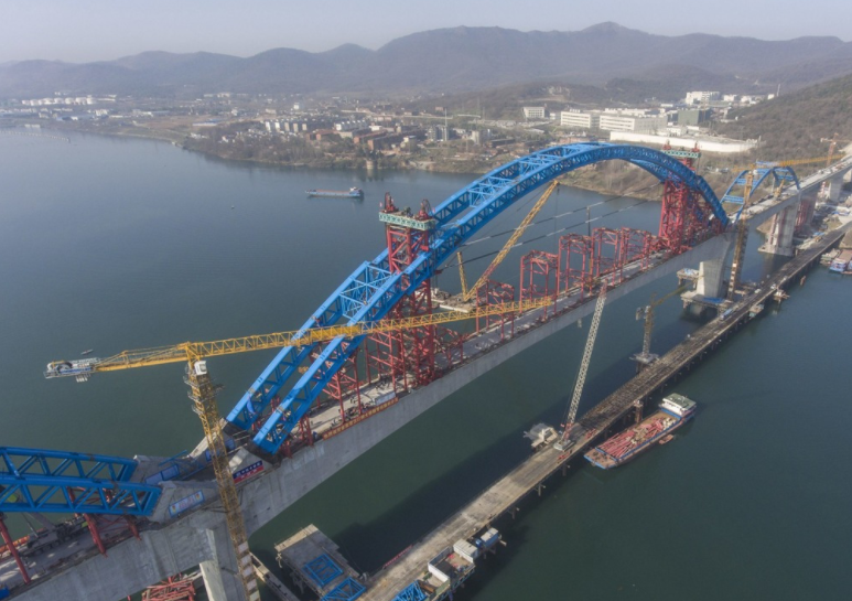 The Cuijiaying Han River Bridge opened to traffic on November 29, 2019. It is located outside the ancient city of Xiangyang in Hubei, adjacent to the famous cultural mountain Xianshan. It uses a (135+2×300+135)-meter continuous steel structure-flexible arch new combination structure to span the Hanjiang River. The most critical control project for the entire high-speed railway line successfully increased the span of high-speed railway concrete beams from 200 meters to 300 meters. The bridge is the world's first continuous steel arch bridge with a speed of 350 kilometers per hour and a span of 300 meters.