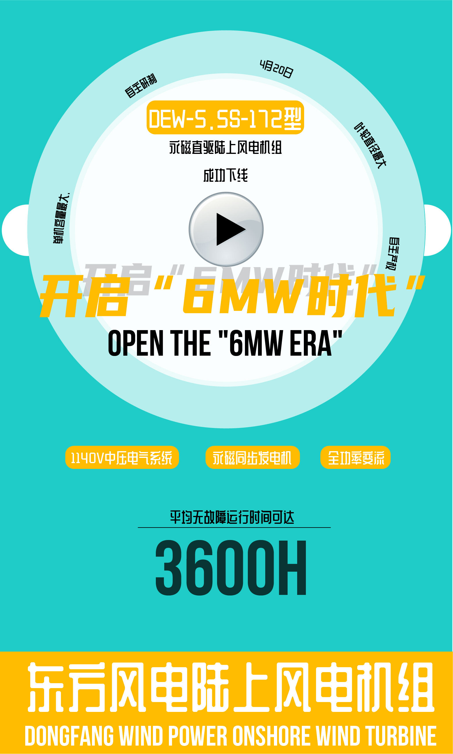 On April 20, 2021, the DEW-5.5S-172 permanent magnet direct-drive onshore wind turbine independently developed by Dongfang Wind Power with completely independent intellectual property rights was successfully rolled off the line at Dongfang Tianjin Wind Power, which is currently the largest single-unit capacity in China. , Permanent magnet direct drive onshore wind turbine with the largest impeller diameter. Its successful rollout marks the official start of the "6MW era" of Dongfang Wind's onshore wind turbines. The company has made a new major breakthrough in the development of onshore high-power wind turbines and celebrated the 100th anniversary of the founding of the Communist Party of China with its outstanding achievements.