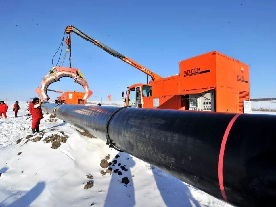 Sino-Russian oil and gas pipeline traverses the frozen soil of Siberia