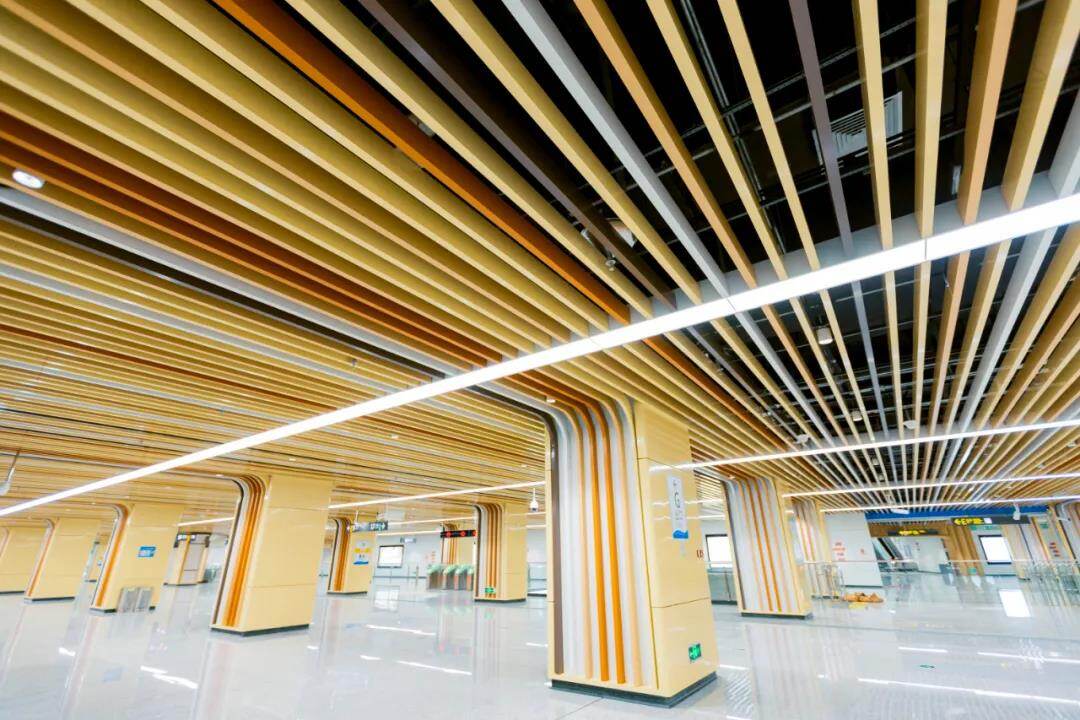 18号线的车站有机场航站楼既视感,预计2021年6月成都天府国际机场投运后,乘坐18号线就可以直达新机场,作为迎接国际客流的轨道交通线路,18号线不仅做到了方便、快捷,更将用“高颜值”的车站公共区装修设计让往来旅客感受“魅力川蜀”!