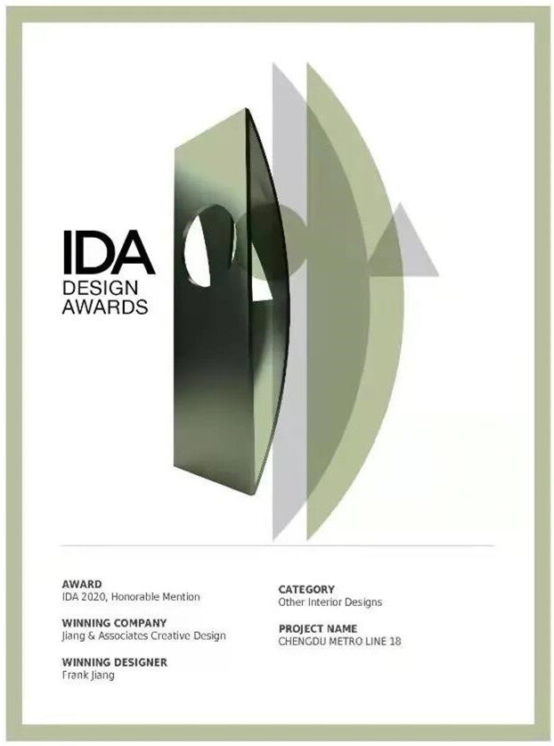 这不是18号线第一次得奖,成都轨道交通18号线一二期车站公共区装修还成功摘得2020第14届美国国际设计大奖荣誉奖。