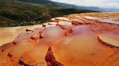 地质爱好者尤其喜欢巴达布·索特(Badab-e Surt)梯田,位于马赞达兰省,名称由bâd,gas,âb,水和surt组合而成,Orost村的旧名称位于西部7公里处。尽管地球上有很多类似的地方,例如美国的猛玛温泉和土耳其的棉花堡,但Badab-e Surt梯田的独特之处在于其独特的橙色色调,这是由于氧化铁的浓缩所致的。