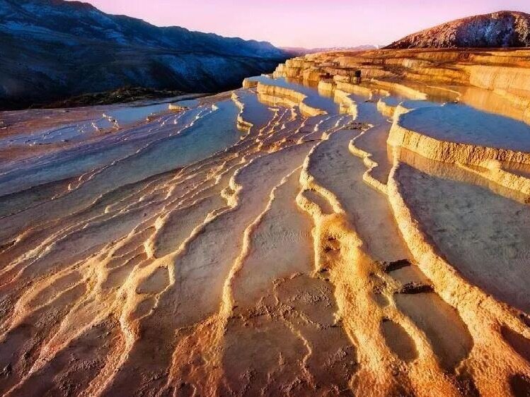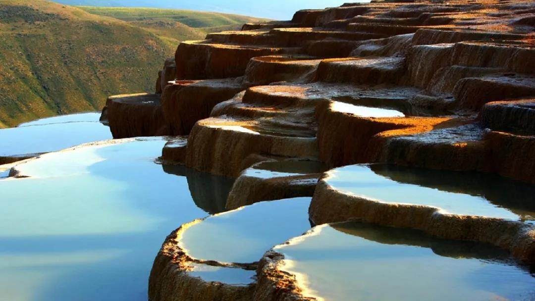 这个梯田位于海拔1,840米,是从两个矿泉中流下的水所沉积的数千年石灰石的顶峰,由于矿物质含量高,人们认为它们具有药用价值。当水到达地表时,二氧化碳会脱气,沉积出碳酸盐矿物。由于较重的矿物质沉淀在台阶的顶部,因此水在向下流动时会变得更加清澈,使该地点变成梦幻的,可反射天空的镜子楼梯,其颜色会根据一天中阳光的照射而改变颜色。(转载请注明见道网www.seetao.com )见道网视频栏目编导/甘林平