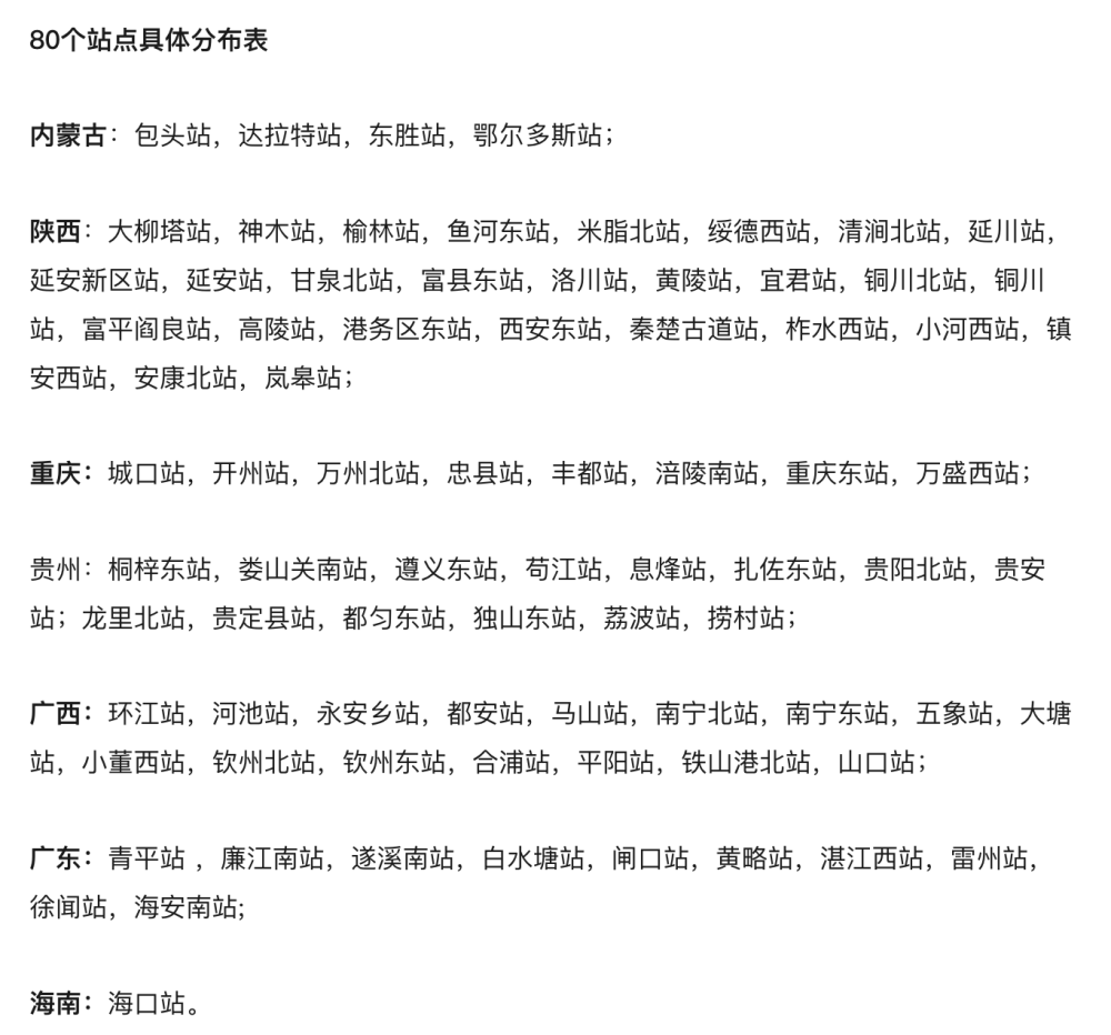 时间多、喜欢火车旅行的朋友,可以在沿途80个站点选取自己感兴趣的停留。这条线路上还有兼具大漠草原风光的鄂尔多斯、有“塞上咽喉”、“军事重镇”之称的延安、彰显汉唐风韵的十三朝古都西安、8D魔幻山城重庆、飞速发展的宝藏城市贵阳、“中国绿城”南宁、安逸的新晋网红小城湛江等。
