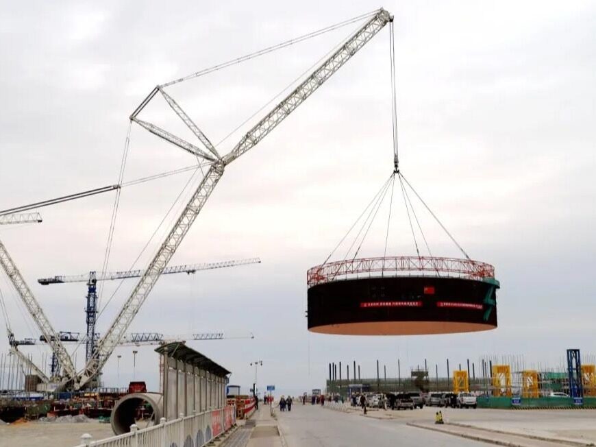 2021年4月27日5点,“华龙一号”批量化建设漳州1、2号机组工程建设现场早已人声鼎沸,各单位都在有条不紊地进行2号机组模块三吊前各项准备工作。在现场风速符合安全条件之后,6:09正式起吊,1600吨履带吊将2号机组模块三稳稳吊起,经过试吊、旋转、带载行走等一系列吊装程序,最后8:38安全稳妥、成功就位。