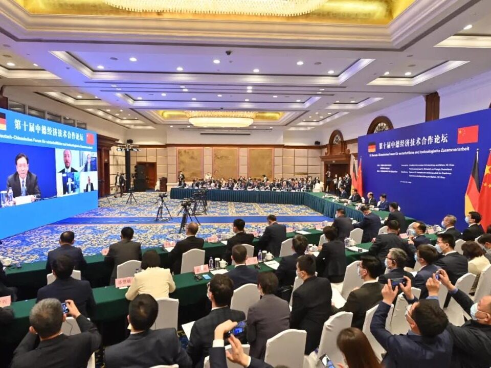 本次论坛以“携手共进、合作共赢——凝聚新发展动力”为主题,旨在顺应时代发展大势,以对话凝聚共识,以合作实现共赢,打造更加紧密的中德经济技术合作伙伴关系。中德双方政府、近百家企业等机构以“线上+线下”方式参会。大会围绕宏观经济、数字化转型、绿色低碳等三个议题开展交流,中德有关企业代表作大会发言。