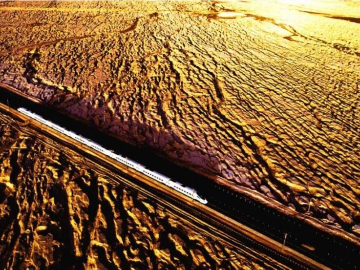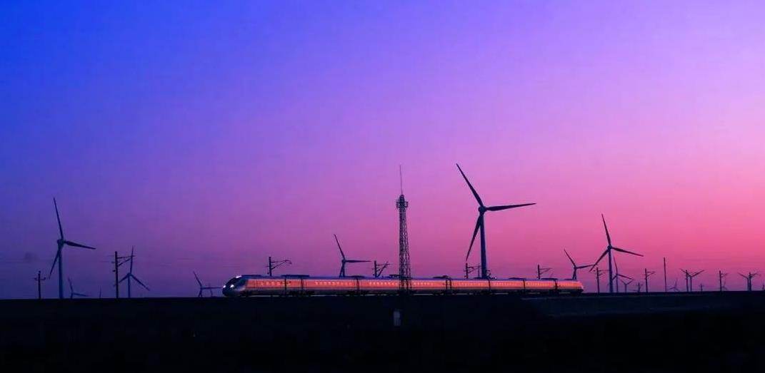 每当黄昏日落时,在夕阳余辉的渲染下线路两侧好似金色波浪白色的动车组列车高速驶过,犹如蛟龙过海,如此震撼的景象,放眼世界也是绝无仅有的。