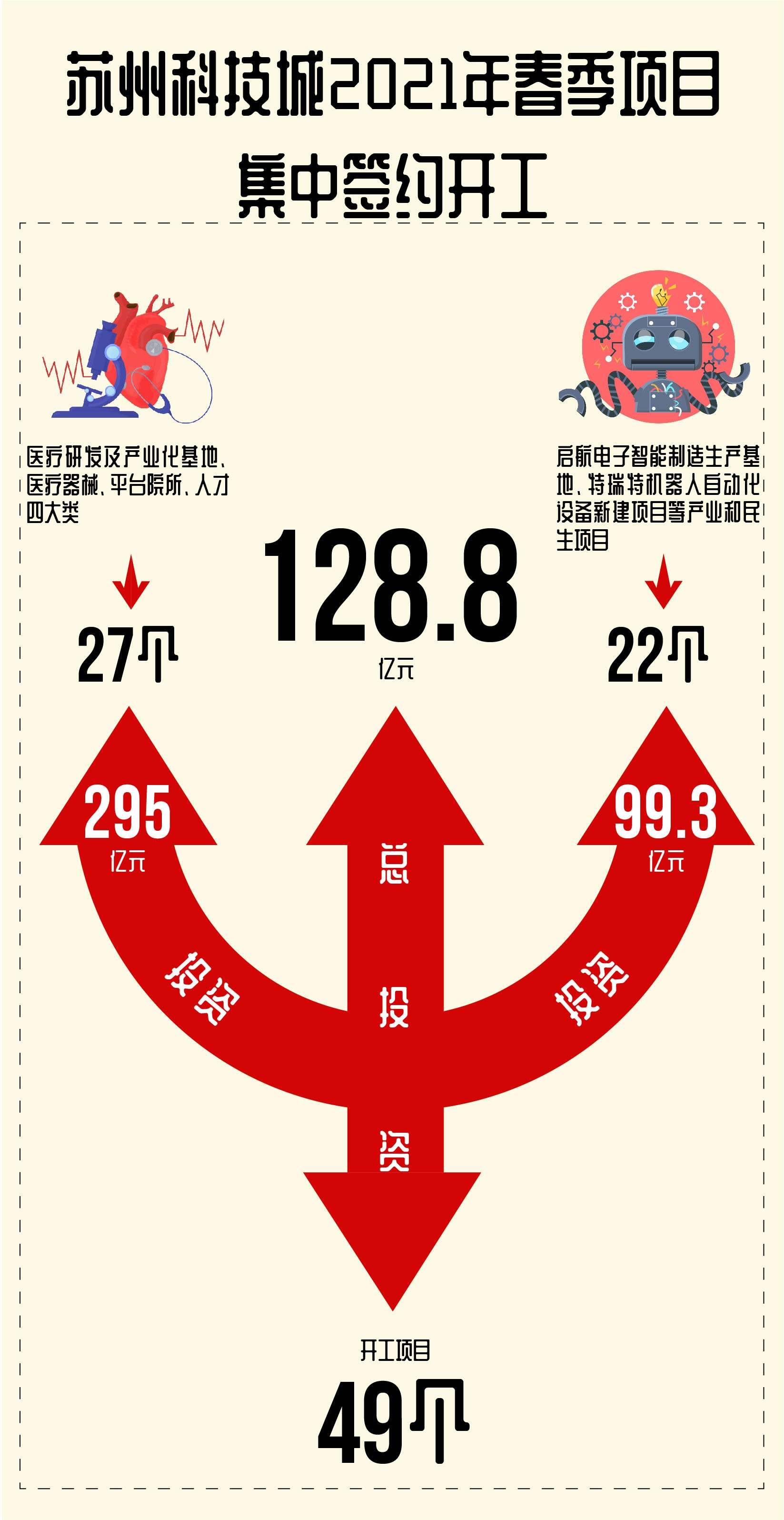 近日,苏州高新区举行“苏州科技城2021年春季项目集中签约开工仪式”。据了解,本次集中签约、开工项目共49个,总投资达128.8亿元。