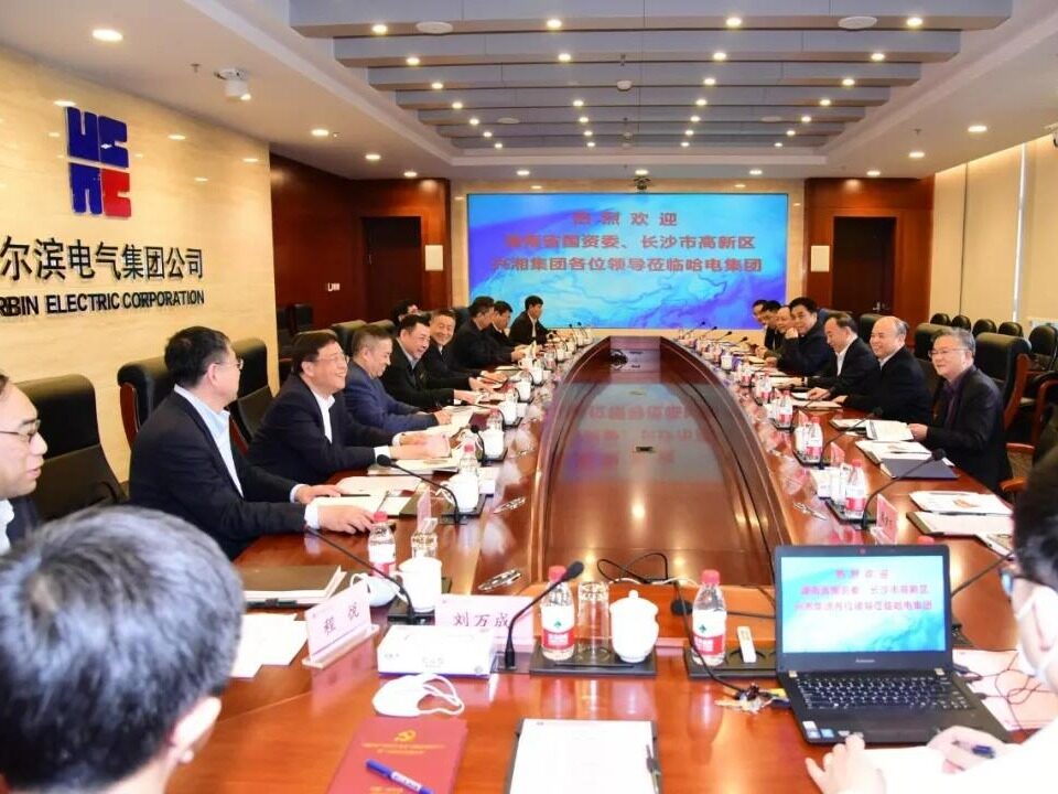 2021年4月29日下午,哈电集团党委书记、董事长斯泽夫会见湖南省国资委党委副书记、主任丛培模一行,双方听取了哈电集团风能公司相关工作开展情况的专题汇报,并就进一步推进哈电集团风能公司成立及后续工作进行了座谈交流。哈电集团党委副书记、董事孙智勇,党委常委、副总经理张英健参加座谈会。