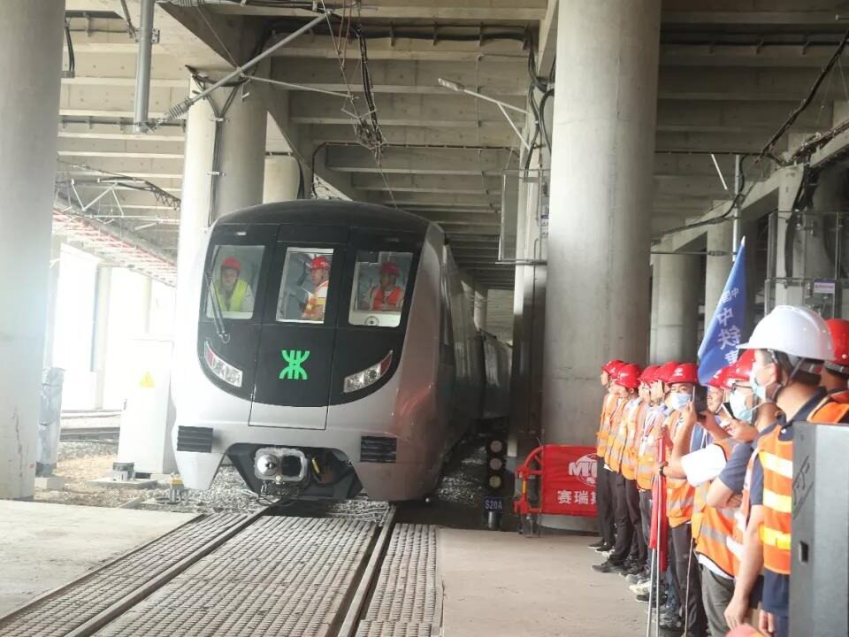 第一辆地铁列车的顺利到达,标志着地铁20号线一期工程向正式通车运营又迈出了关键性的一步。地铁20号线将于8月底开始试运行,年底开始商业运营,并与地铁11号线换乘,结束深圳国际会展中心不通地铁的局面。(转载请注明见道网www.seetao.com)见道网工程栏目编辑/贺玉婷