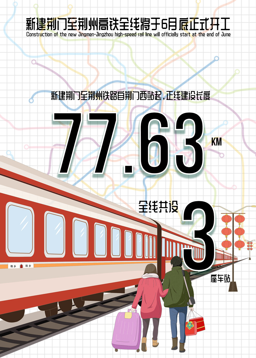荆荆铁路是湖北省独立投资建设的第一条350公里时速高速铁路。建设总工期3.5年。项目建成通车后,将改善荆门、荆州两地交通出行条件,进一步优化区域综合交通结构,促进江汉平原腹地沿线经济社会发展。(转载请注明见道网www.seetao.com )见道网工程栏目编辑/贺玉婷,设计/张韬
