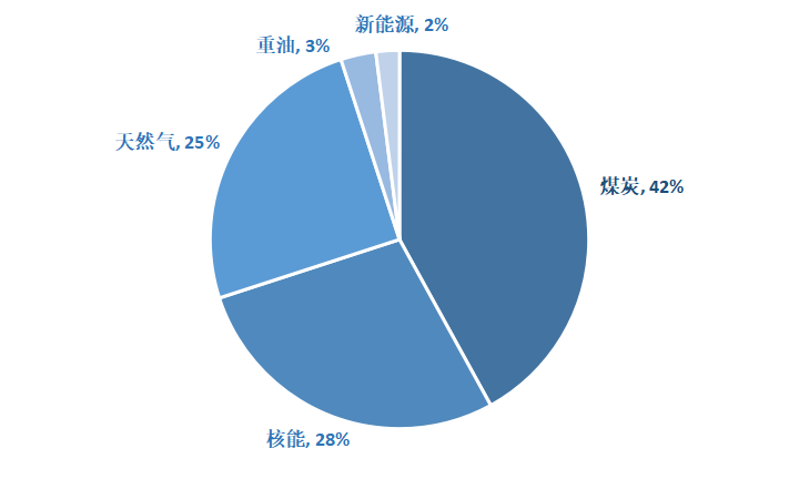 韩国。韩国超过70%的化石能源依靠进口,天然气需要从卡塔尔进口,煤炭需要从澳大利亚进口,原油需要从沙特阿拉伯进口,资源对外依赖性极强。根据2016年韩国发电结构数据,煤炭发电占42%,天然气发电占25%,重油发电占3%。韩国民用核技术先进,起步早且装机大,技术成熟而产业链完善,核能发电占到了28%,但是政府“四十年内实现无核化”的承诺让核电的发展进退两难。