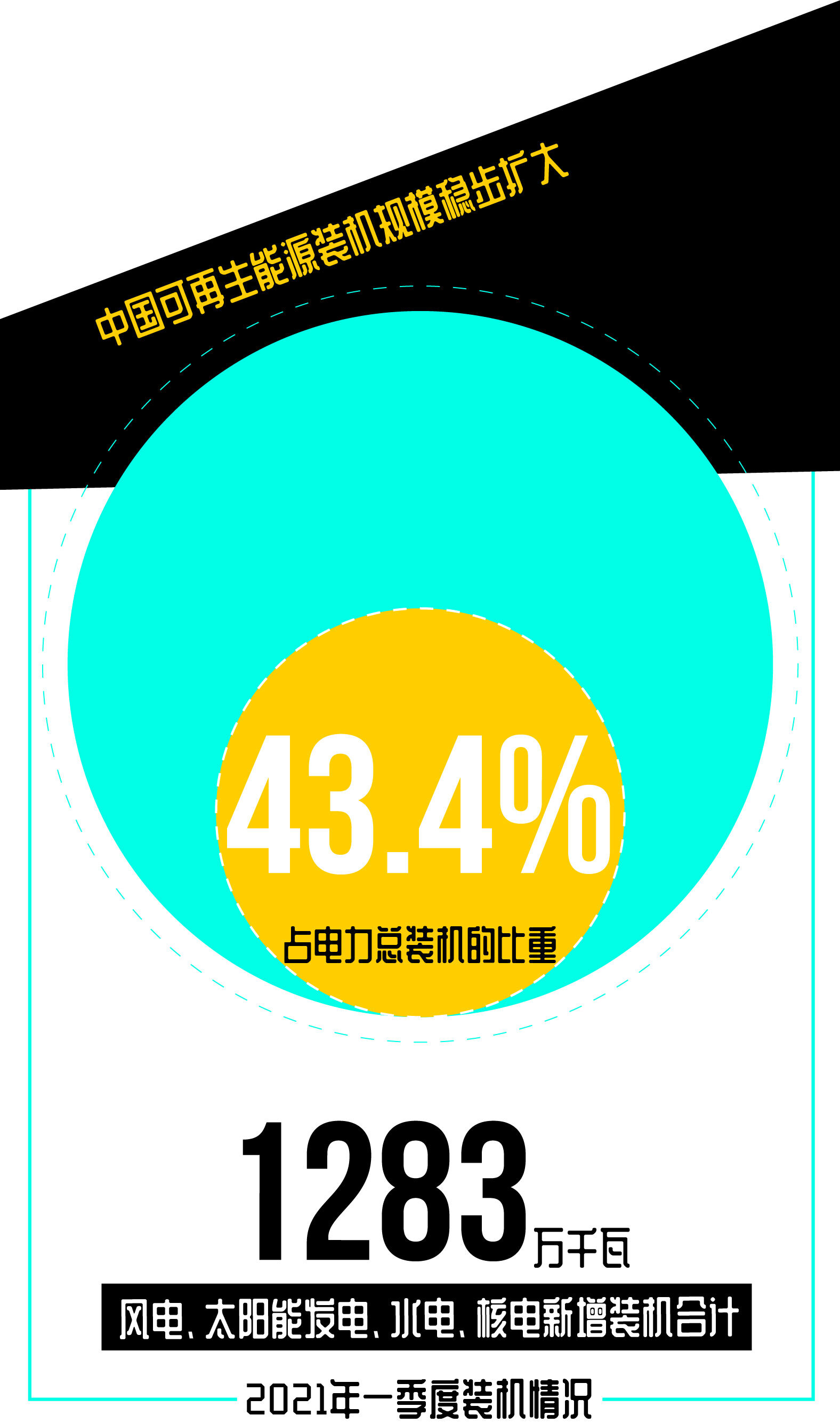 中国可再生能源装机规模稳步扩大。一季度,风电、太阳能发电、水电、核电新增装机合计1283万千瓦,占电力总装机的比重提升至43.4%,较2020年同期提高2.8个百分点。截至一季度末,中国可再生能源发电装机达9.48亿千瓦。(转载请注明见道网www.seetao.com)见道网战略栏目编辑/许生鹏