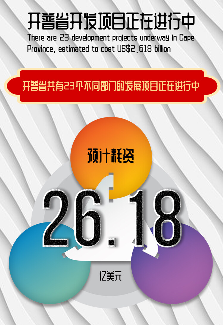 会议获悉,在未来两年中,开普省将启动5000公里农场到市场公路建设项目,并进一步开展灌溉系统建设和灌溉渠道建设等项目。开普省还将修建冷藏库来保存水果和蔬菜。
