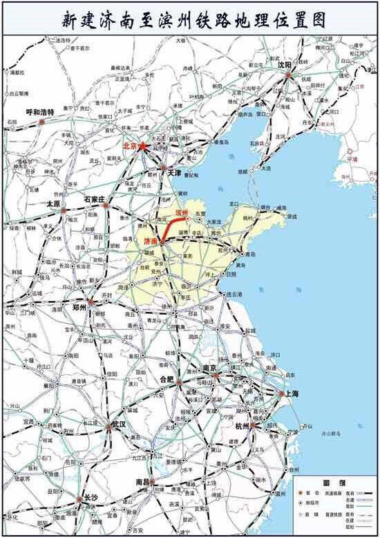 《新建济南至滨州铁路社会稳定风险分析工作公示》信息显示,济滨高铁全长约150公里,设站六座,其中新建车站4座。济滨高铁将连接京沪二通道,填补了地方不通高铁的空白,为黄河沿岸高速发展提供基础保障。