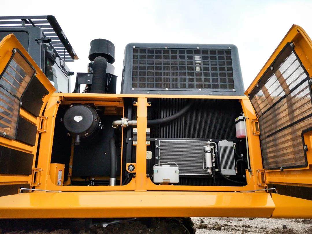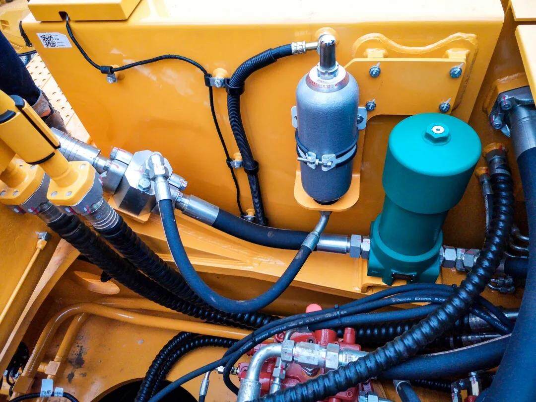 越级的双回转马达结构,起步快、转得稳、刹车灵;大容量回油滤,纳污更强;高端蓄能器,脉冲更低;大通径破碎管路,压损更低。