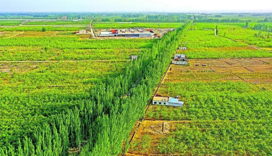 沿着高速看新疆。车窗外铺天盖地的绿从城市蔓延到乡村,高高的白杨防风林内,是一片片枝叶茂盛的苹果林、核桃林、红枣林等果树林。在阿克苏市区看到的是“城在林中,水在城中,人在园中”,到了农村看到的则是“村在绿中,家在林中,人在画中”。