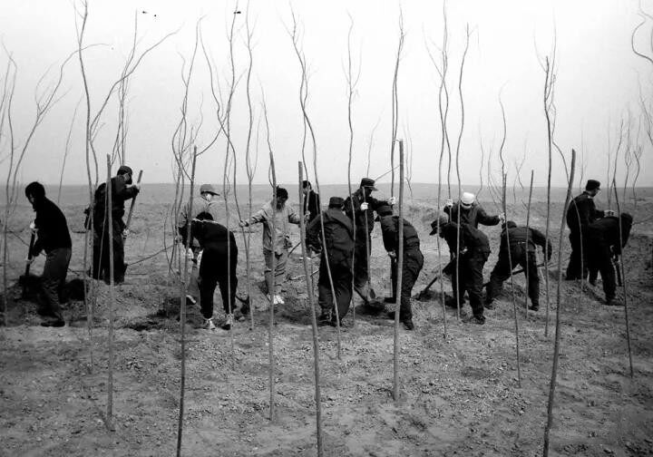 四0四厂在1957年确定厂址,1958年九、十月间建设队伍就开进了戈壁滩。当时那里没有一户人家,没有一棵树,只有稀稀拉拉的骆驼草,周边是茫茫戈壁荒无人烟。后来,因在厂里长大的孩子没见过树,厂子还特意派人将孩子们用车拉到玉门镇去看树。孩子们见到大树就高兴地喊起来:“好大的骆驼草!”