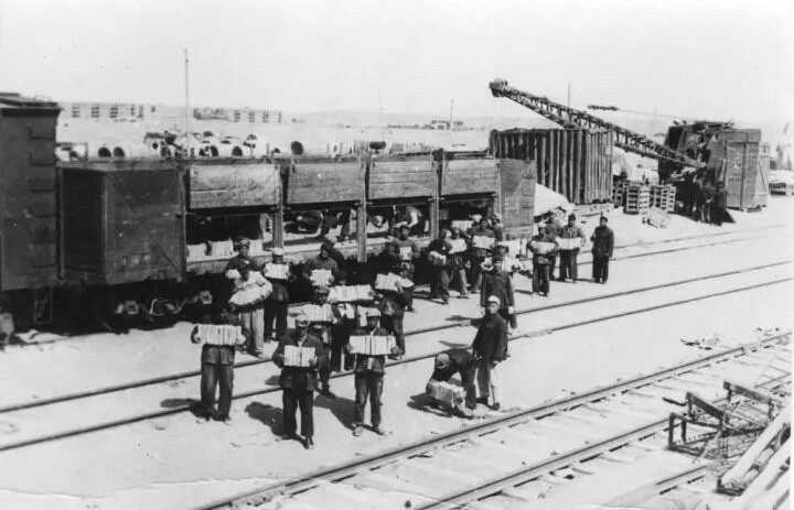 戈壁滩年降水量50多毫米,蒸发量却高达2000多毫米,钻孔打到基岩都见不到水。气候这样干燥,人们初到时会很不习惯,口唇干裂流鼻血。特别是内地人,到这里才真正体会到水的重要。最初,厂子建设施工和生活用水都要靠火车、汽车从几十里地外拉回来。一吨水的成本相当于一吨汽油的钱,真是“滴水贵如油”。生活用水少,只好定量分配,早晨用过的水要留到晚上再用。几十公里的正式输水管线工程量大,一时建不起来,职工们便突击抢修了临时水线和泵房。1959年初,输水管线初步建成通水,以后又经过改造才正式通水。