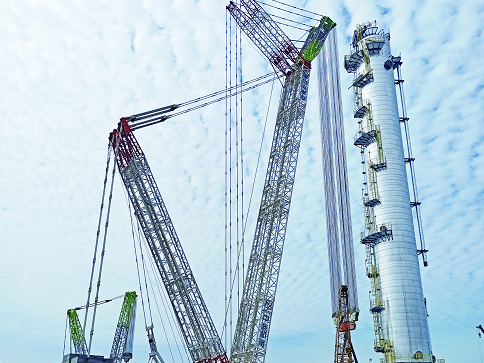 中核机械作为项目施工方,是国内吊装行业的龙头企业。中核机械工程有限公司核电分公司副总工程师朱全国介绍说:“此次1号丙烯塔吊装施工是整个项目吊装施工中的重中之重,针对塔体吊装重量大的难点,我们联合中联重科的技术服务人员,对吊装工艺和吊装索具进行了反复优化,中联重科还专门为ZCC3200NP增加了重型副臂工况,大大提升了吊装的稳定性和安全性。可以说正是中联重科起重机的给力表现,有效保障整个项目圆满完成。”