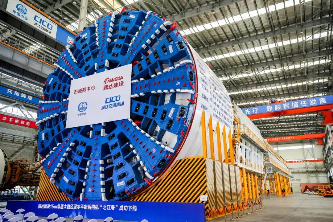 “之江号”盾构机开挖直径超过15米、长120米,重达4300吨,将应用于之江路输水管廊及道路提升工程(之浦路至复兴路)隧道项目。设备掘进过程中将穿越中风化泥质粉砂岩、淤泥质粉质粘土、中风化石英砂岩等地层区间,复杂的地质对设备的沉降控制和地质适应性均提出较高要求。中铁装备联合腾达建设进行了针对性设计,有效地解决了淤泥质复合地层掘进中存在的刀盘结泥饼、刀具异常磨损、堵仓滞排等问题,为工程安全高效建设提供有力保障。