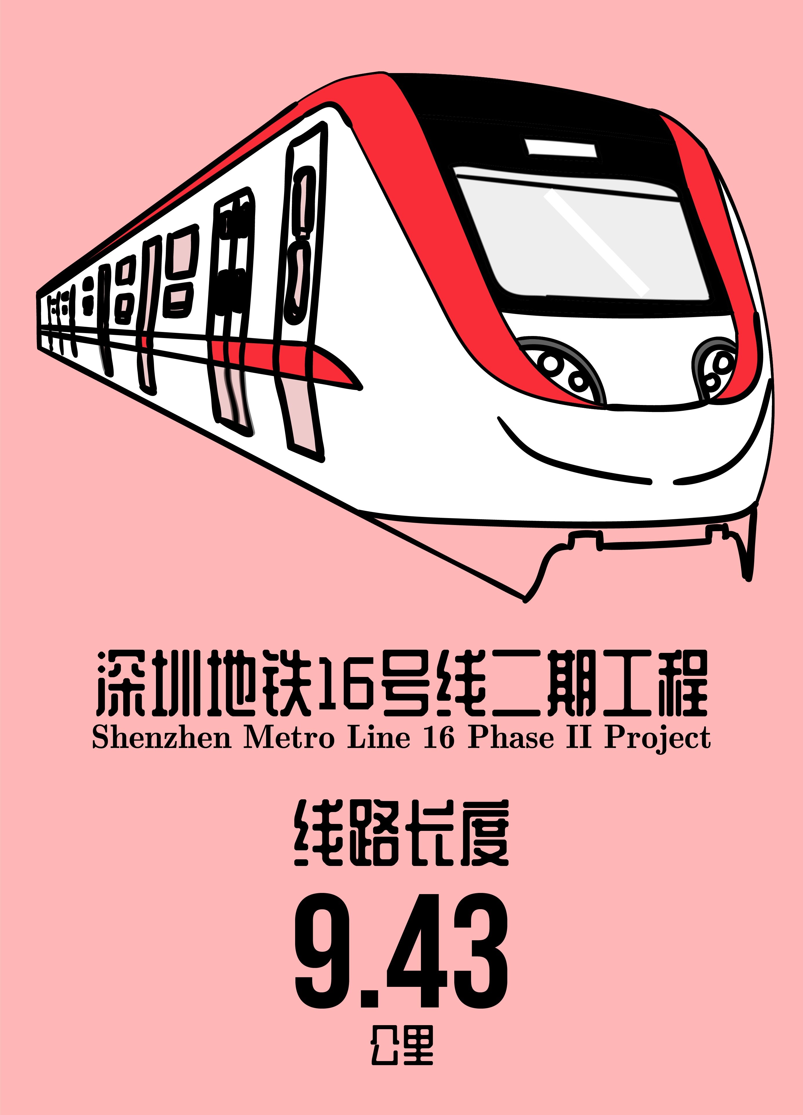 16号线二期工程线路起自在建16号线工程,大运站站后临时折返线末端,止于西坑站,线路长度约9.43公里,设8座车站(其中2座换乘站),新建西坑停车场。