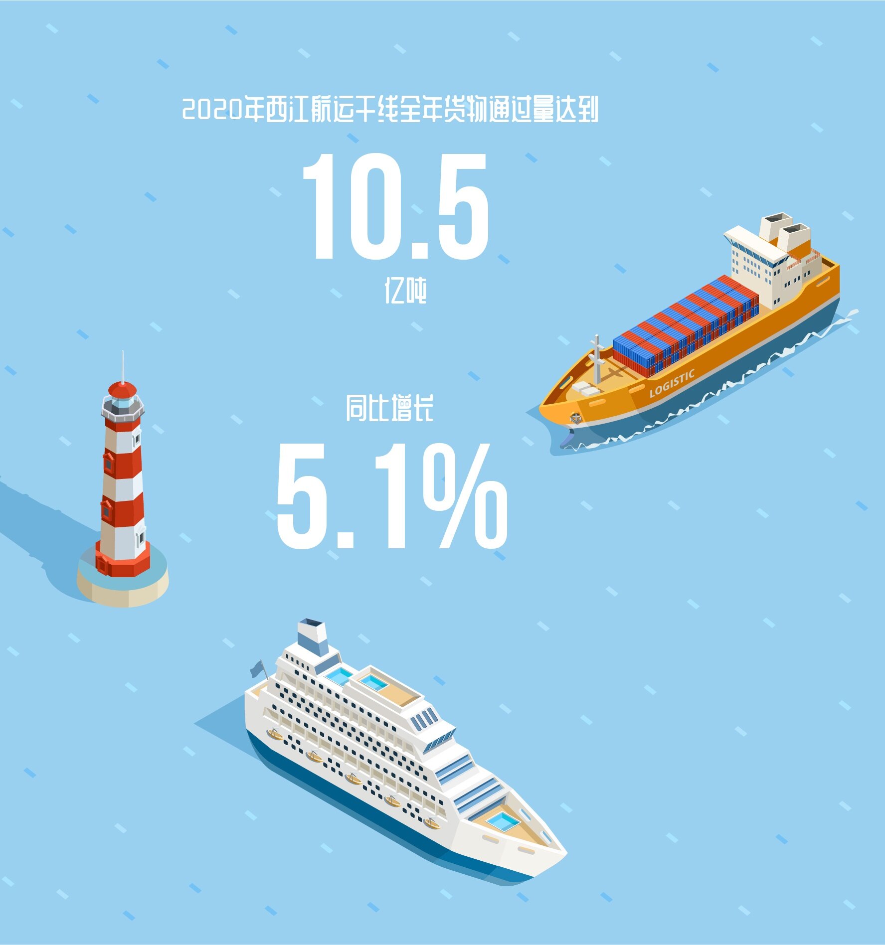 2020年,中国内河港口完成货物吞吐量约50.7亿吨,同比增速由19.4%大幅跌落至3.7%。按季度分析,一季度由于新冠疫情和春节停工的双重影响,内贸市场供需强势走弱,内河港口吞吐量一季度同比增速由2019年四季度的超高增速大幅下跌27个百分点;而后随国内疫情在二季度得到有效控制,国内逐渐复工复产,内河港口吞吐量均稳步回升;内河港口吞吐量增速则在“内循环为主、双循环相互促进”新发展格局的提振下升至13.7%的较高增速。