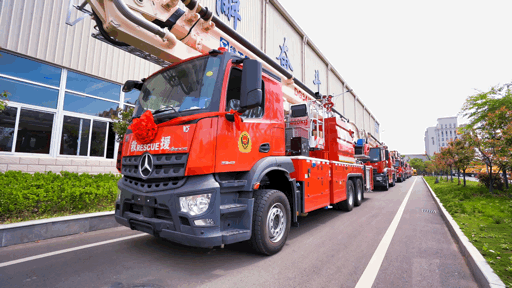 身披大红花,16台V5系列消防车集结一队,从徐工消防智能制造基地出发,承载责任与使命,为南方市场再添“利剑”。