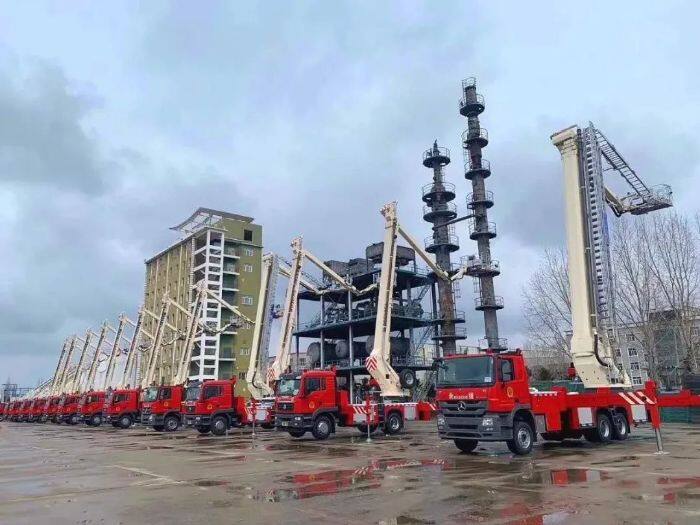 截至目前,DG100登高平台消防车、JP80举高喷射消防车仍是“亚洲第一高”、“世界第一高”的保持者。