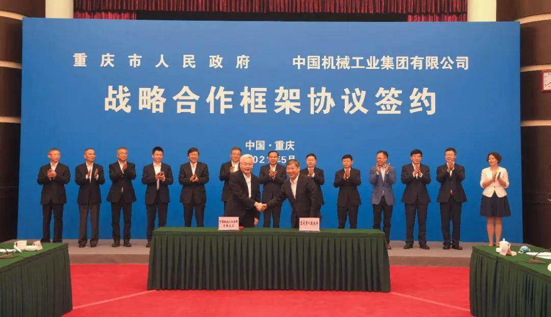 5月19日,国机集团与重庆市人民政府签署战略合作框架协议。国机集团党委书记、董事长张晓仑,重庆市委副书记、市长唐良智共同见证签约仪式;集团党委常委、副总经理、总工程师,中国工程院院士陈学东与重庆市副市长熊雪代表双方签约。