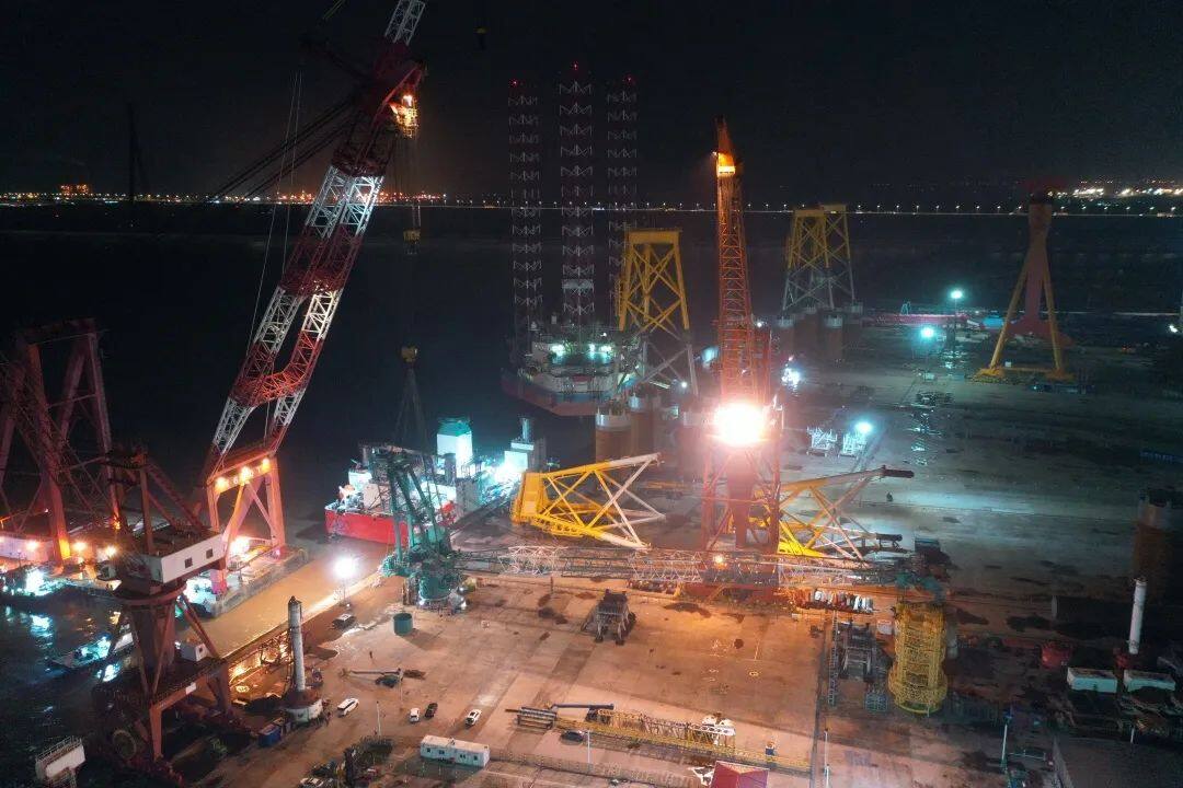 5月17日,经过项目团队近33小时的连续奋战,韩通800吨起重机在南通振华重装码头顺利完成整机总装。