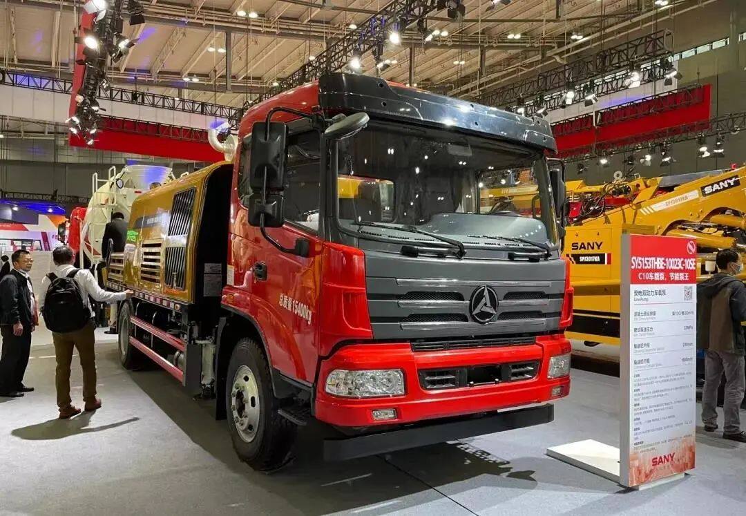 SY5153THBE柴电双动力车载泵,配置了柴油机200kW,电动机132kW双发动机,真正实现零排放、无污染、超静音,轻松应对250米内的高层泵送。