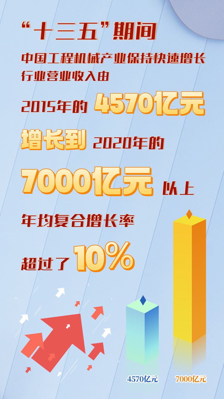 近年来,中国工程机械行业坚持深化供给侧结构性改革,加强技术创新,不断提升高端产品研发能力。数据显示,“十三五”期间,中国工程机械产业保持快速增长,行业营业收入由2015年的4570亿元增长到2020年的7000亿元以上,年均复合增长率超过了10%,为中国的工业增长、经济建设作出了积极的贡献。与此同时,一大批重大装备研制成功,为中国和全球工程机械产业发展提供了新装备、新产品。