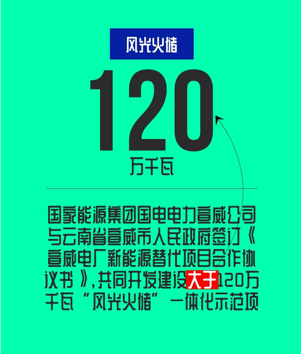 根据合作协议,双方将围绕云南打造“绿色能源牌”战略,采取“总体规划分期建设”的原则,在十四五期间建成大于120万千瓦的“风光火储”一体化示范项目,其中包括104万千瓦光伏发电、15万千瓦风电、1万千瓦储能。项目将在宣威市7个乡镇街道逐步开展,打造新能源替代火电转型升级的典范,共同推进宣威市新能源产业建设,巩固脱贫攻坚成果,促进当地经济社会高质量健康发展。