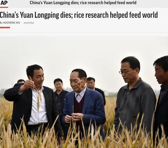 美国发表题为《中国科学家袁隆平去世,其水稻研究帮助养活全球人口》的文章称,袁隆平一生致力于水稻研究,在中国家喻户晓,被誉为“杂交水稻之父”,并且在2004年获颁世界粮食奖。袁隆平的研究不仅帮助中国从粮食短缺迈向了粮食充足供应,他和他的团队还与数十个国家开展合作,帮助他们解决粮食安全和营养不良问题。即使在晚年,袁隆平也没有停止研究工作。袁隆平的研究成果使水稻收成大幅上升,挽救了无数生命,是中国的民族英雄。