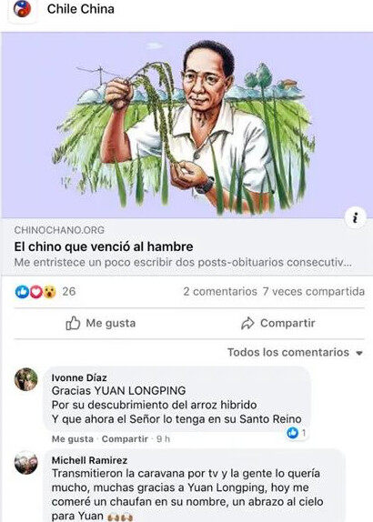 智利网友对袁隆平的贡献表达感谢