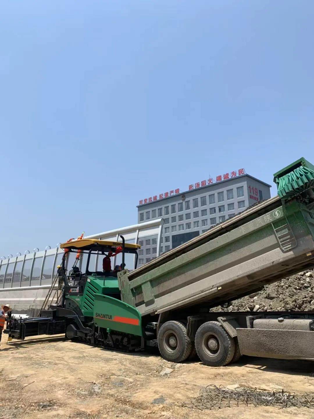 经过多品牌摊铺效率对比,吴总选定了拥有290马力的可伸缩的山推C5快速摊铺机。吴总定车后,山推道机销售人员只用了3天时间就把崭新的摊铺机交付到了嘉兴快速路的工地上,每天摊铺4000吨水稳料。