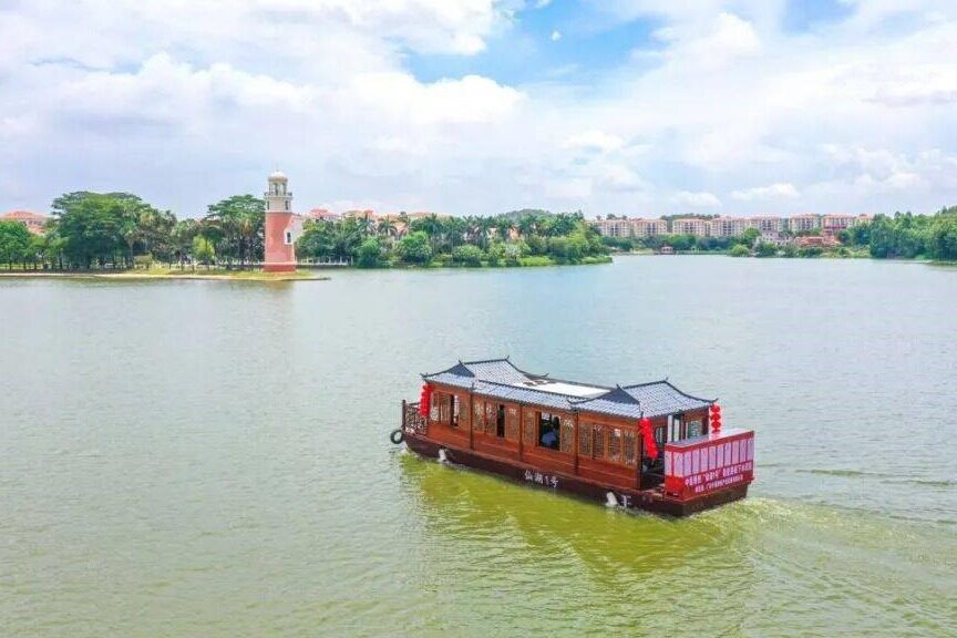 该游船长约12米、宽约4米,可同时载客20-30人。游船采用30kW氢燃料电堆,续航可达10小时以上,具有高环保性、高舒适性和低能耗、低噪音的显著特点。