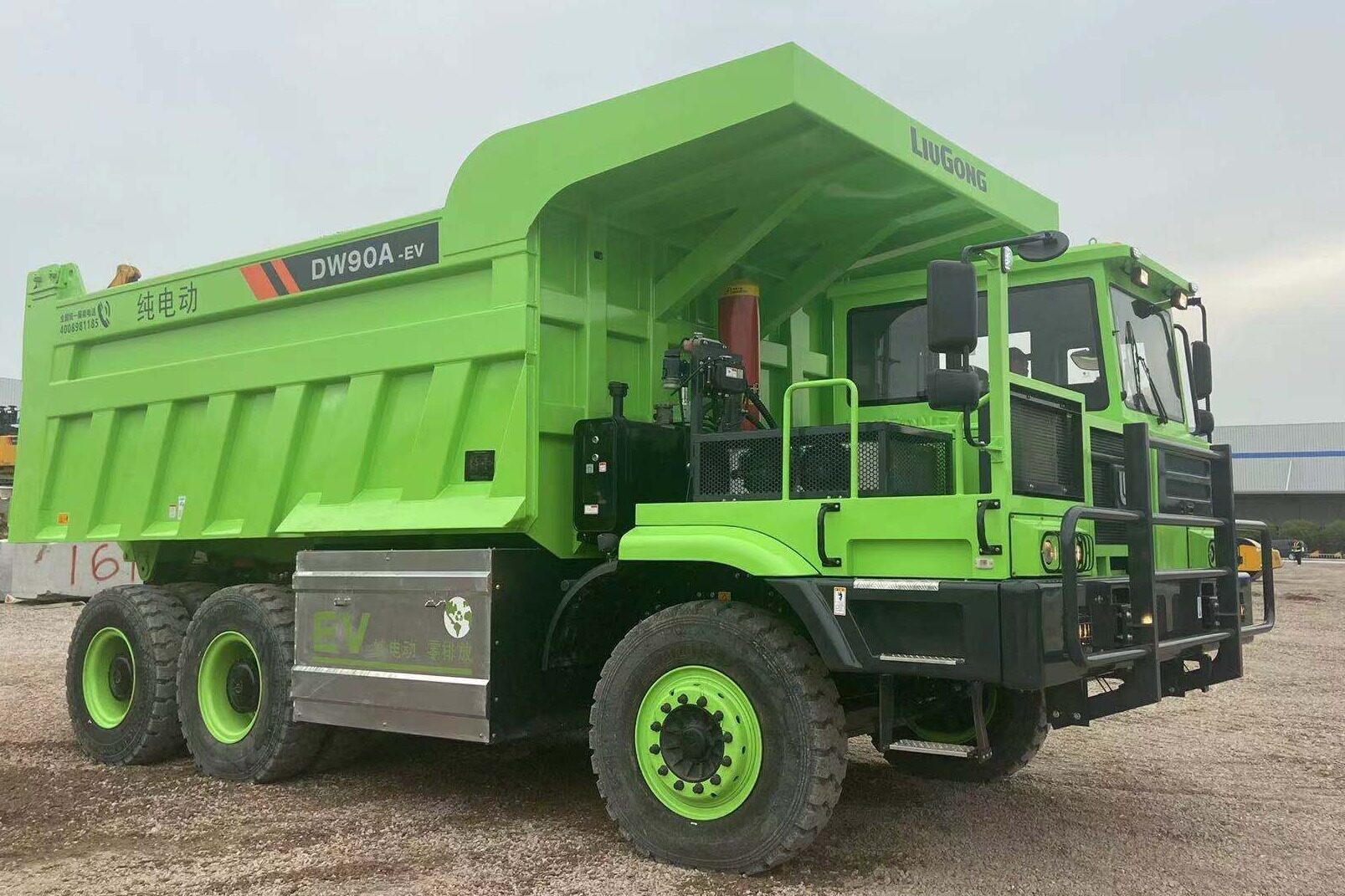 而DW90A-EV电动宽体车是一款绿色环保的纯电动非公路宽体自卸车,静态输出扭矩大,动力强劲,高效智能,可将能量回收再利用,有效节省运行成本。同时,操作舒适安全,可靠性高,广泛适用工况于重载的沙石骨料运输。在国家低碳环保政策下,电动化宽体车未来发展前景可观,助力我国全面实现 “碳达峰、碳中和”目标。