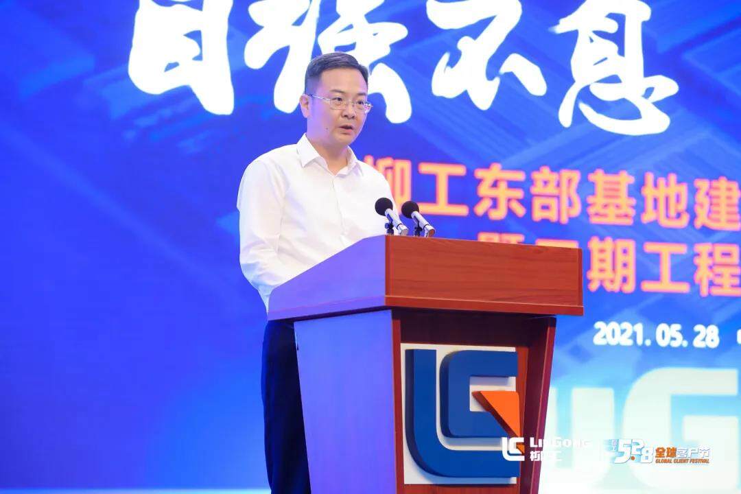 今天,我们共同庆祝柳工东部基地建设发展推进会暨二期工程投产仪式,见证990F HD挖掘机、LMI 1213ES电动履带式反击式破碎站、DW105A非公路宽体自卸车等首台设备下线的高光时刻,柳工又一次踏下了最清晰、最坚定有力的东进足迹。“柳工东部基地十年、‘东进战略’二十余年取得的辉煌成就和系列产品技术创新成果,是柳工持续自主创新,推动高质量发展的生动实践。”广西柳工集团机械有限公司党委书记、董事长、CEO曾光安表示。