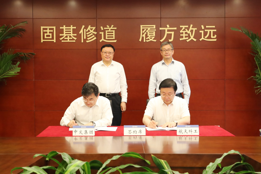 5月28日,中交集团和中国航天科工集团有限公司在中交大厦签署战略合作框架协议。中交集团党委书记、董事长王彤宙与中国航天科工党组书记、董事长袁洁出席仪式并见证签约。