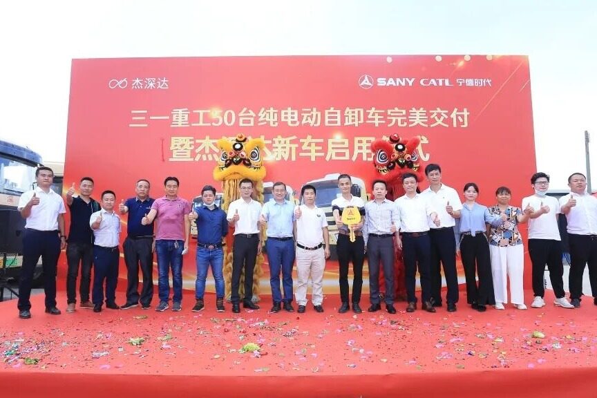 5月28日上午,在300多位嘉宾的见证下,首批50台三一纯电动自卸车交付深圳杰深达实业有限公司,随着车辆金钥匙的递交,现场50台工程大车齐声鸣笛,为双方的强强联手、合作共赢喝彩!