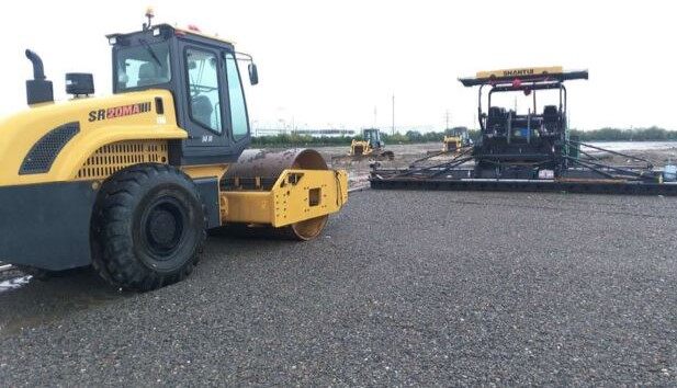 山推95M PLUS型和90SPLUS摊铺机凭借质量稳定性高,整车进口配置,可水稳层和沥青多功能摊铺,服务网点近等优势,于2018年获得进场施工资格,由于表现优异,施工方又引进了山推道机单钢轮,双钢轮,胶轮等道路成套设备。
