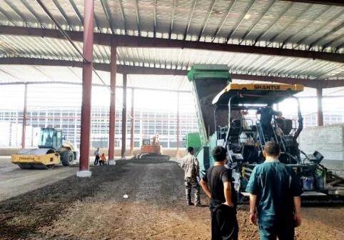2018年12月初,以山推SRP95M-3 PLUS多功能摊铺机为代表的山推全套推道装产品进驻园区现场施工,经近五个月夜以继日的施工作业,园区内基建工程项目路面部分顺利完工。