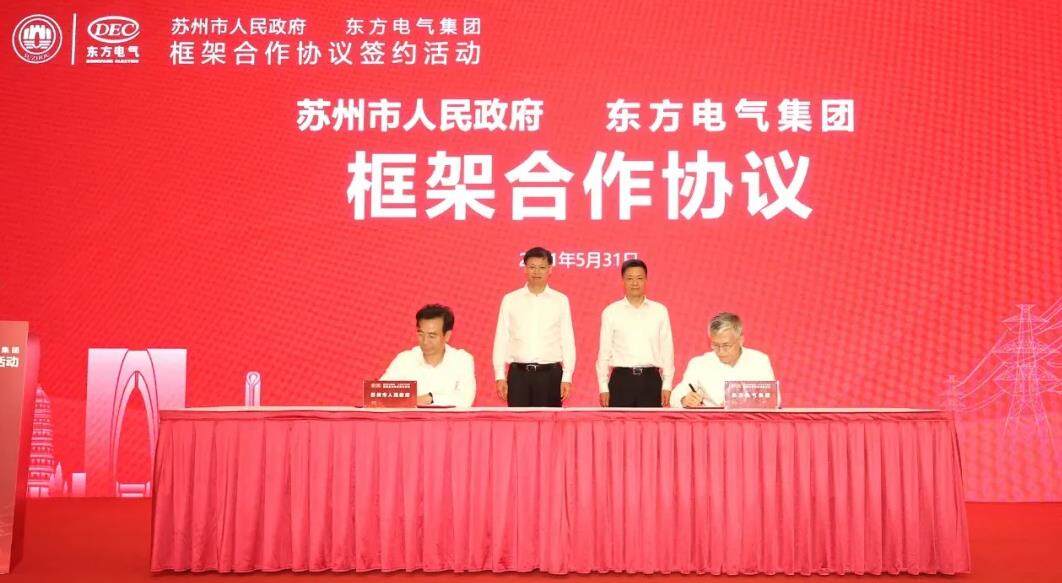 5月31日,苏州市政府与中国东方电气集团有限公司签署框架合作协议,深化央地合作,加快产业布局,打造国家氢燃料电池汽车示范城市。省委常委、市委书记许昆林,中国东方电气集团党组书记、董事长俞培根出席仪式并致辞。签约前,许昆林会见了俞培根一行。