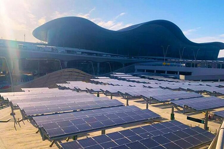 阿布扎比机场和马斯达尔在阿布扎比国际机场完成了阿联酋最大的太阳能停车场的开发。这个3兆瓦的项目涉及在机场新中场航站楼停车场的树冠上安装太阳能电池板。