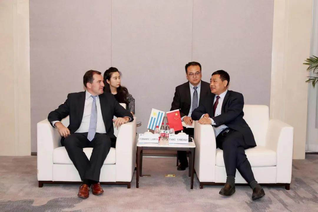 签约仪式前,方彦水分别与王刚大使、费尔南多·卢格里斯大使举行了友好会谈,就未来在乌拉圭多个领域开展合作进行了交流和探讨,各方均对未来开展更加深入的合作充满信心。(转载请注明见道网 www.seetao.com )见道网一带一路栏目编辑/田增鹏