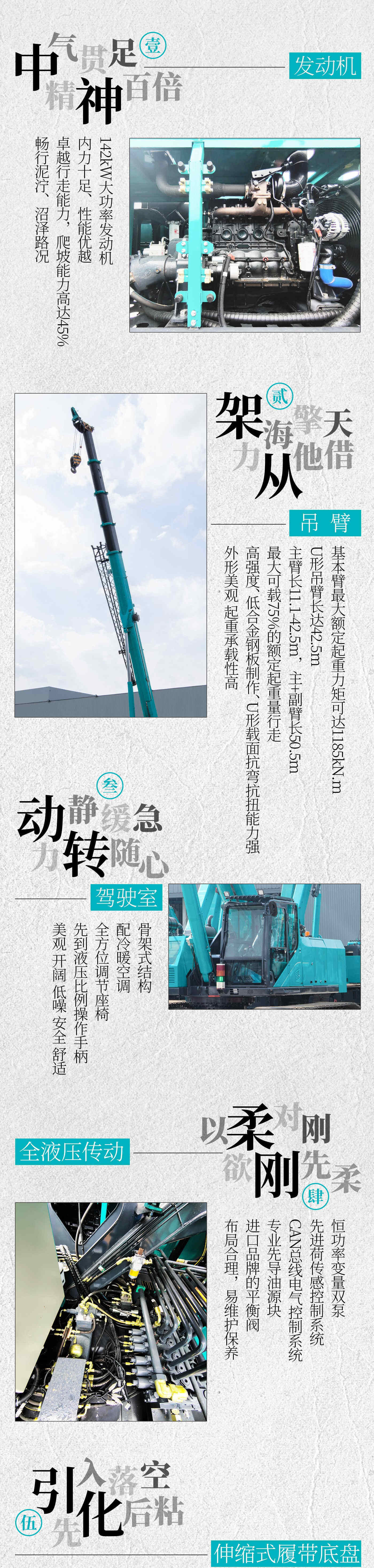 山河智能起重机产品差异化特色突出,主攻伸缩臂履带起重机、越野轮胎起重机两大类产 品,性能中国领先,也研制桁架臂履带起重机等其他特色产品。在电力建设、桥梁施工、石油化工、水利水电建设等行业领域得到广泛应用,具有其他起重设备所无法替代的地位。(转载请注明见道网www.seetao.com)见道网机械栏目编辑/鲍红英